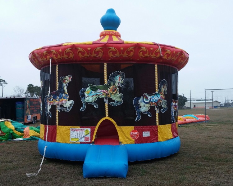 Carousel Bounce HouseCarnival Package (corporate):Carousel Bounce House1Dropdown13158599_31242391100Step right up for timeless fun with this Carousel Bounce House — a round, circus‑style inflatable that looks like a fairground merry‑go‑round and gives kids a safe, contained space to jump, bounce, and giggle. Tall enough for energetic play, it features a padded entrance ramp for easy access, mesh walls for airflow and adult visibility, and colorful carousel horse graphics that spark imaginative play. Ideal for birthday parties, school events, or neighborhood gatherings, this unit keeps the action in one easy‑to‑monitor spot while providing soft, bouncy flooring to reduce bumps and tumbles. Simple to set up on a flat lawn or field, it pairs well with other party rentals and creates an instant focal point that feels festive and nostalgic — like bringing a bit of the carnival home. Circus BannerCarnival Package (corporate):Circus Banner1Dropdown13158599_31242531100