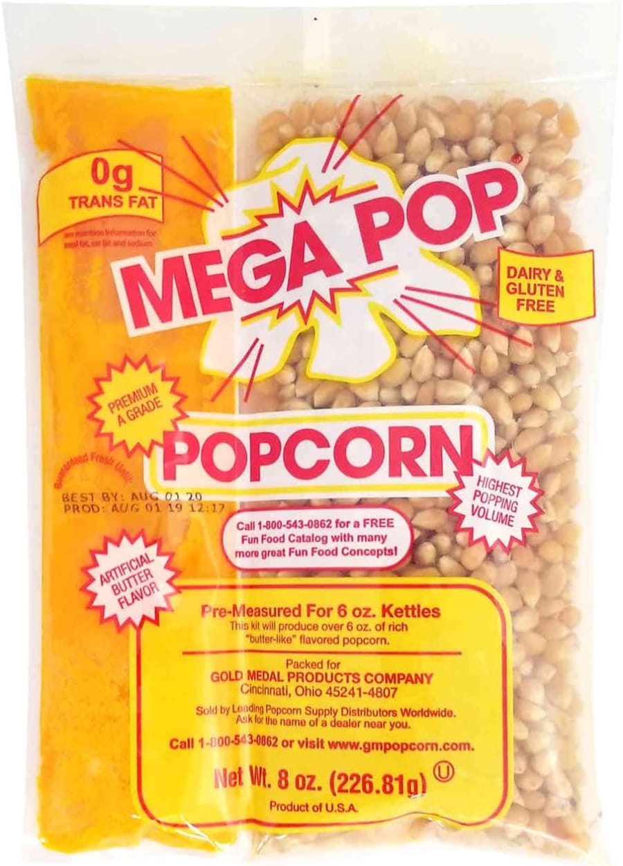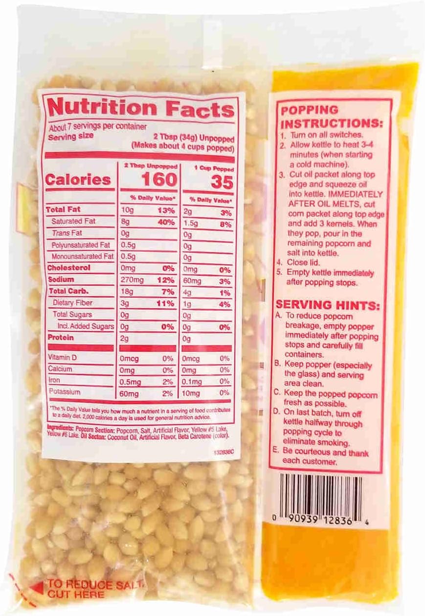 Each individual pouch contains 6-ounces of popcorn kernels and 2-ounces of popping oil to make approximately 7 servings per container of popped popcorn. Whether you're hosting a casual,
