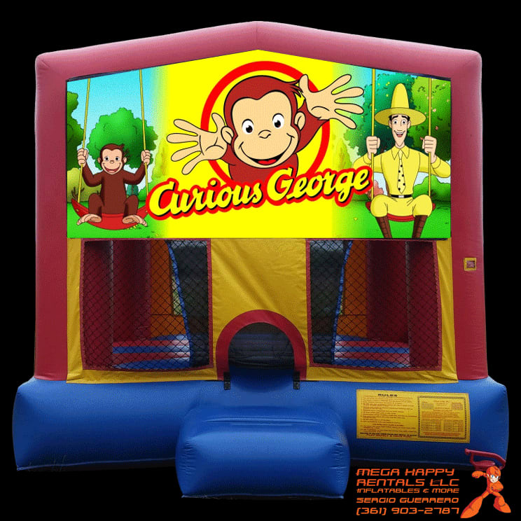 Bounce House Rental with Curious George Banner in Corpus Christi, TX & Surrounding Areas 🏠